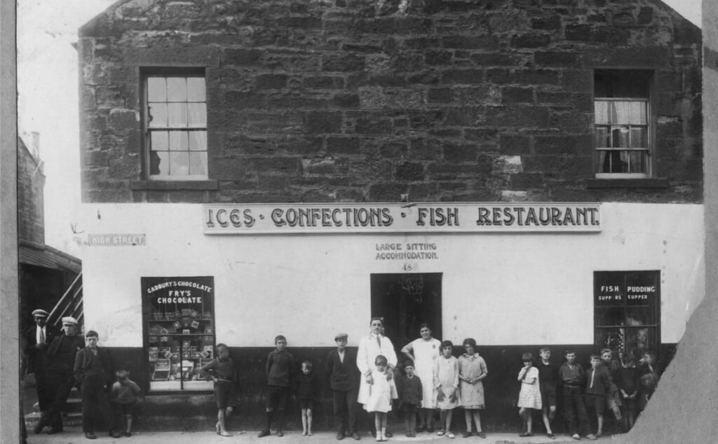 Mary Contini then cited the many Italian families which came to East Lothian in the early 20th century and these included her own family, Di Ciacca. Mary’s grandfather Cesidio Di Ciacca opened The Cockenzie Cafe (photo above) which was both a fish and chip shop/restaurant on the right of the entrance and an ice cream parlour on the left. Other prominent families in East Lothian included Luca in Musselburgh, and Togneri, Corriere and Greco in Dunbar. You can read more about the cafe above and the Di Ciacca family here.